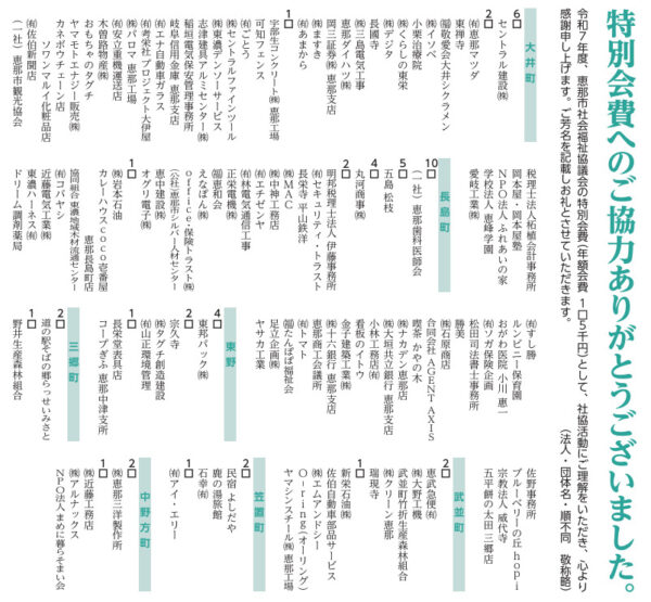 皆さまの温かいご支援が、安心して暮らせるまちづくりの大きな力となっております。