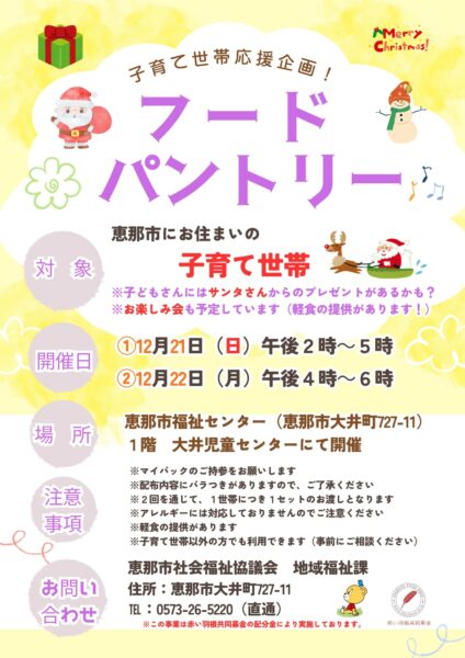 フードパントリー(クリスマスパントリー)を下記にて開催します。