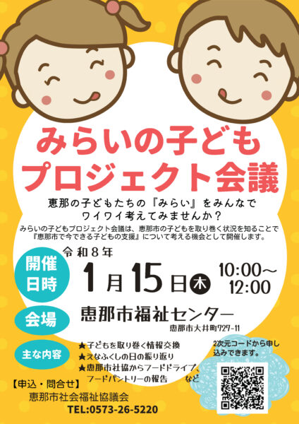 恵那市のすべての子どもたちが明るい未来に向け、成長し続けられるよう、みんなでワイワイ考えてみませんか?