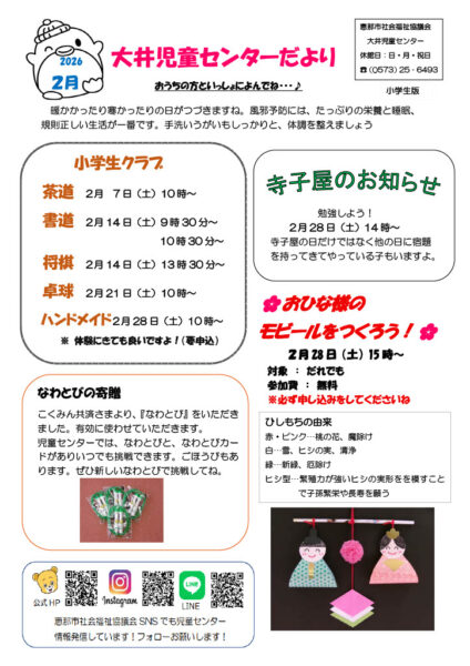 おたより 2月号(大井児童センター)