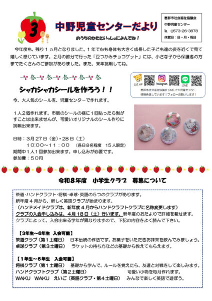 イベント盛りだくさんの児童センターに遊びに来てくださいね 😀