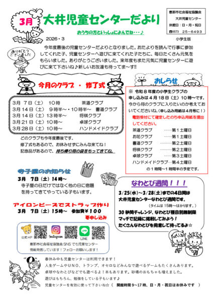 3月のおたよりを発行しました。