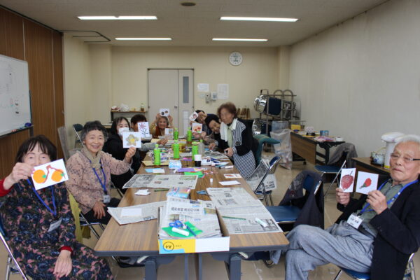 「初めてやったけど、これは新聞があれば家でも出来るね」と話しながら、秋を感じさせる素敵な作品が完成しました。
