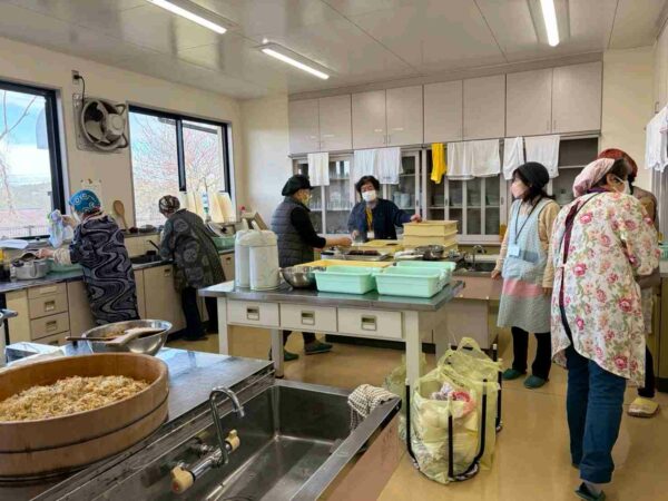 おしろやま食堂のメインは地域で活動しているサロンとみだのボランティアによる味ごはん作り。