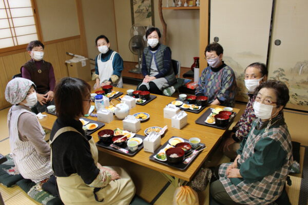 頭と体を動かした後は、ボランティアさん手作りの美味しいご飯の時間です。みなさん「ここの(サロンの)ごはんはいつも美味しい」と言って食べておられました。