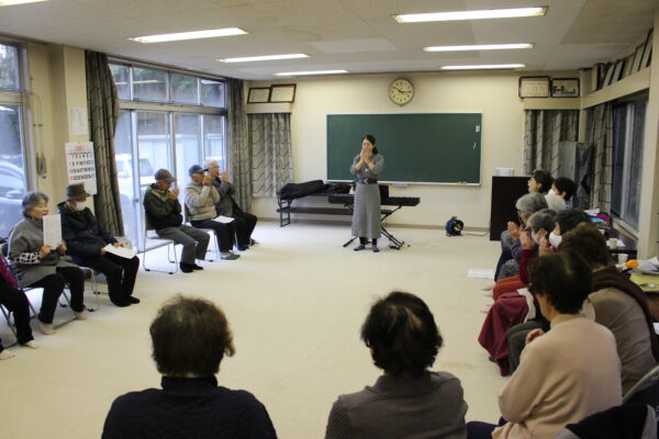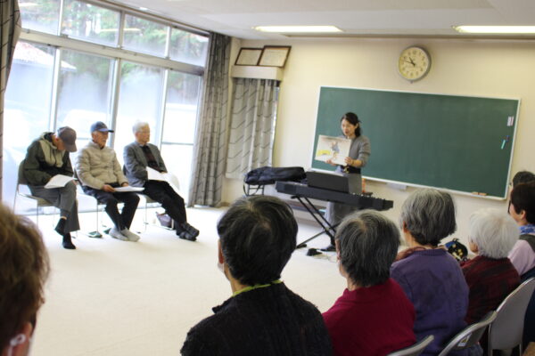 歌に対するうんちくや紙芝居に相槌を打ったり、隣の席の人と笑い合ったりしながら和やかな時間を過ごしました。