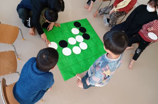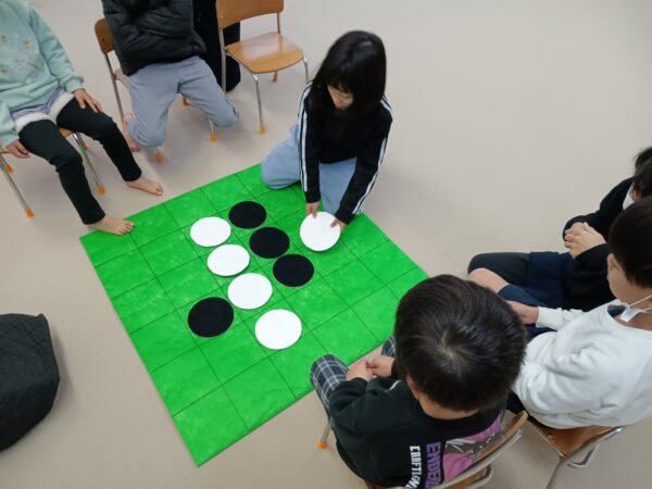 おひさま小学生のお楽しみ会はオセロゲームをチーム対抗で楽しみました。