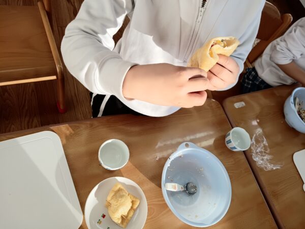 お家で保護者の方と作ってみたよと教えてくれる子もいました。