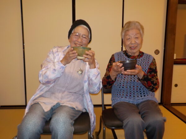 3時のおやつにかんから餅屋さんでお餅を食べられたり、かめやさんでカステラとコーヒーを飲まれ久しぶりの外出を満喫されました。