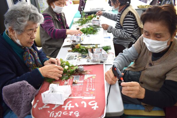 ご利用者の皆様は「これでいいかな」「こんな感じかな」と悩みながらも飾り作りに集中されていました。