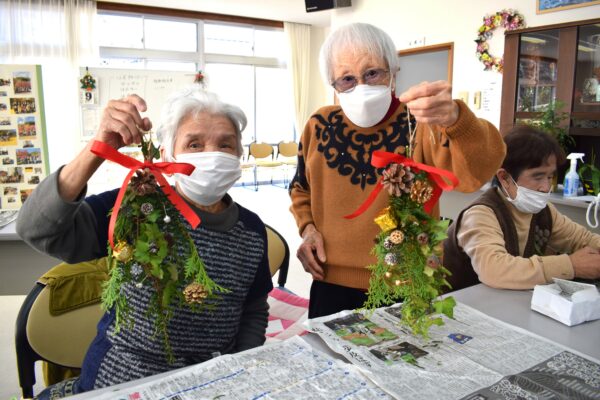 いきいきい教室明智では、クリスマス飾りとしてスワッグを作りました。