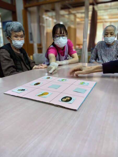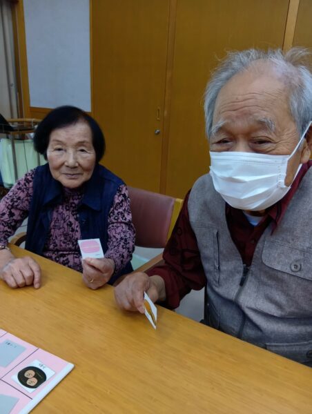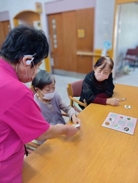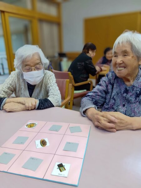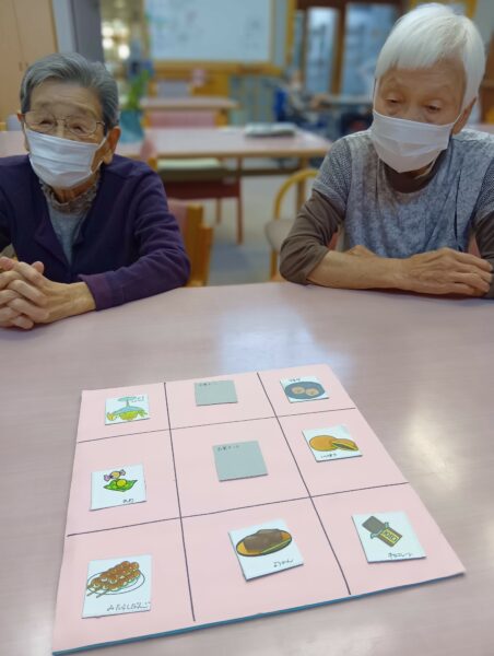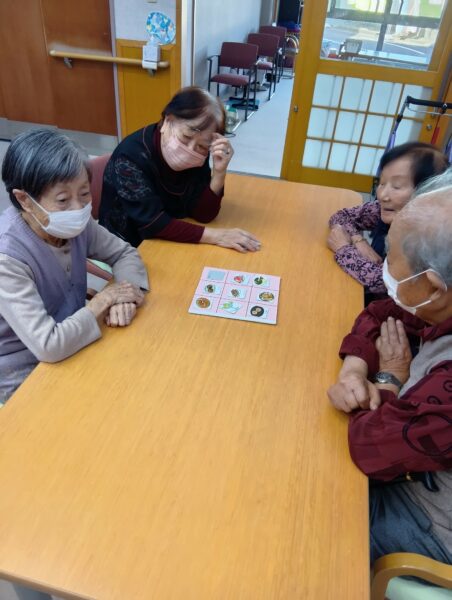 先週のレクリエーションは頭の体操で、絵合わせビンゴゲームをしました。