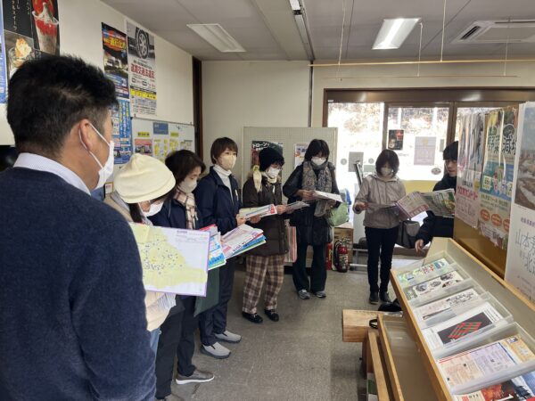 福寿苑前バス停から道の駅ラフォーレバス停までの往復乗車を行った後、デマンドバスと路線バスを活用した上矢作からの具体的な移動例を説明していただきました。