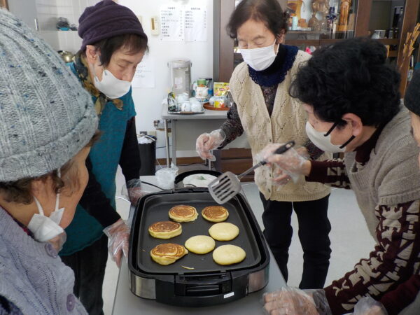 いきいき教室明智では、おやつレクでホットケーキ作りを行いました。