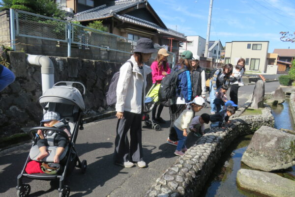 中津川市役所からの遊歩道を散策しながら歩き、公園では遊具を楽しみました。