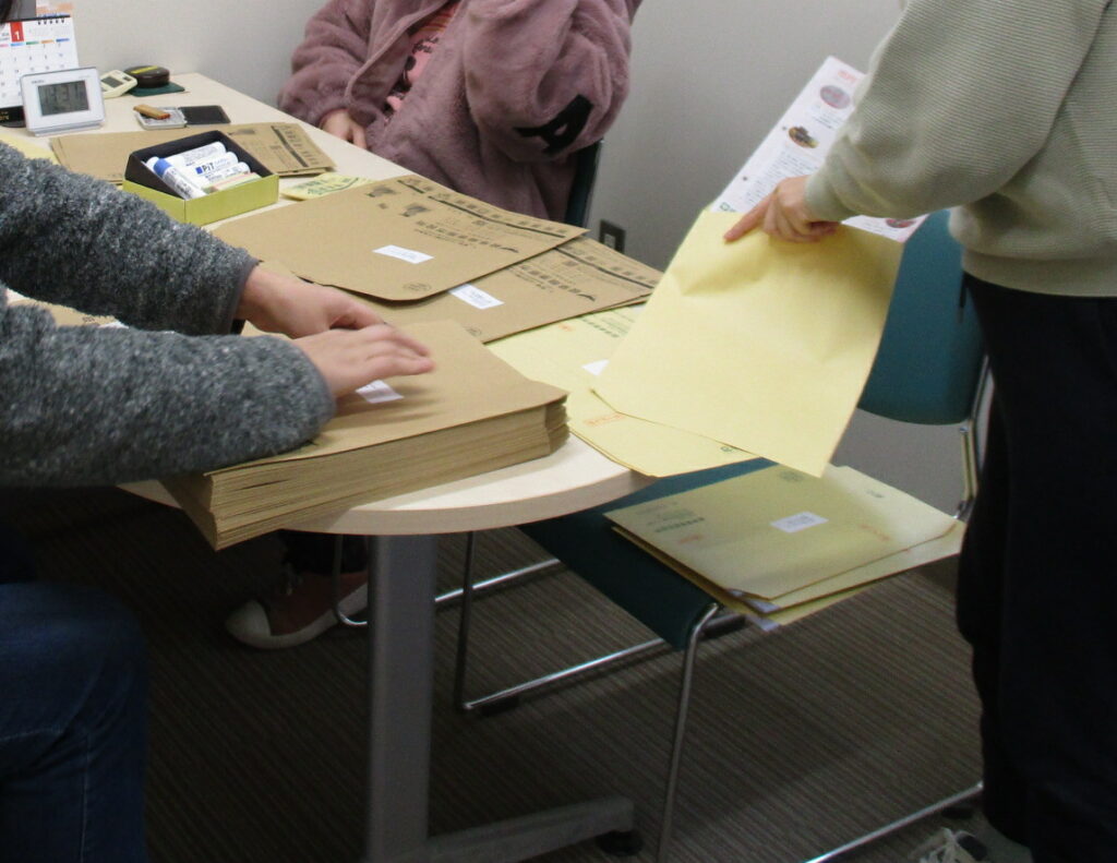 今年初めての、広報誌の封入作業です。この作業は市役所で行います。