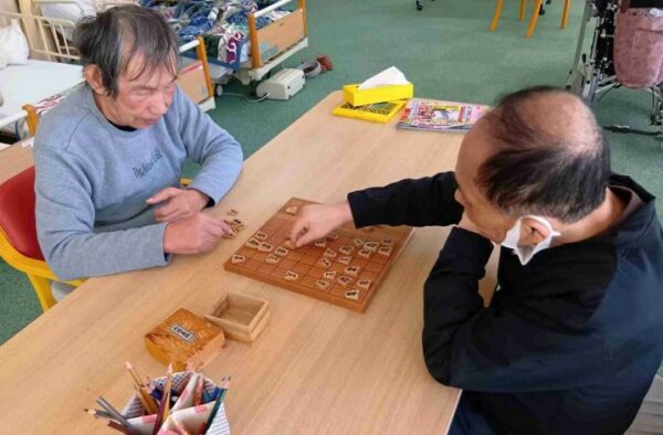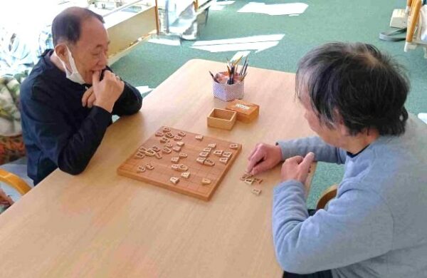 明智デイサービスでは、男性ご利用者様が毎週、将棋を楽しんでいらっしゃいます。