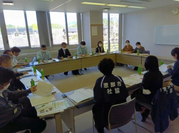小牧市社会福祉協議会の介護保険事業所等の管理者・担当者と事務局(計8名)の方々を岩村福祉センターでお迎えし、居宅介護支援事業・訪問介護事業・通所介護事業などの運営について情報交換を行いました。