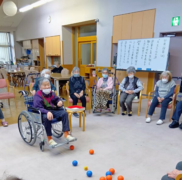 11月22日(いい夫婦の日)のレクリエーションでボッチャを行いました。