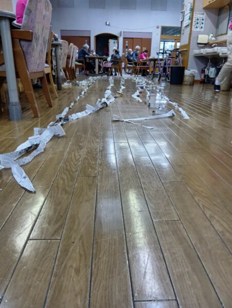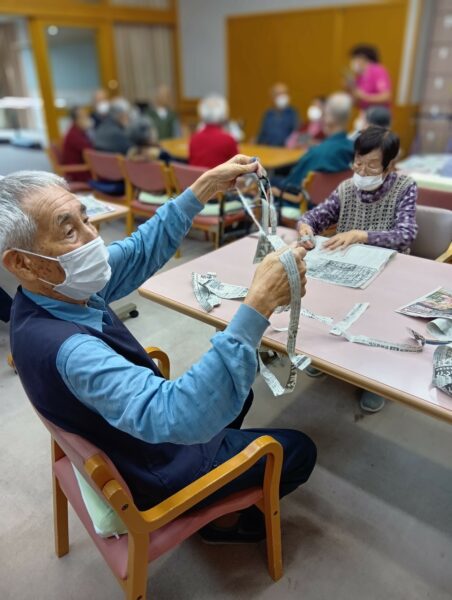 どれだけ長くちぎれるかの競争です。なんと10m以上もちぎって見える上手な方もみえました。