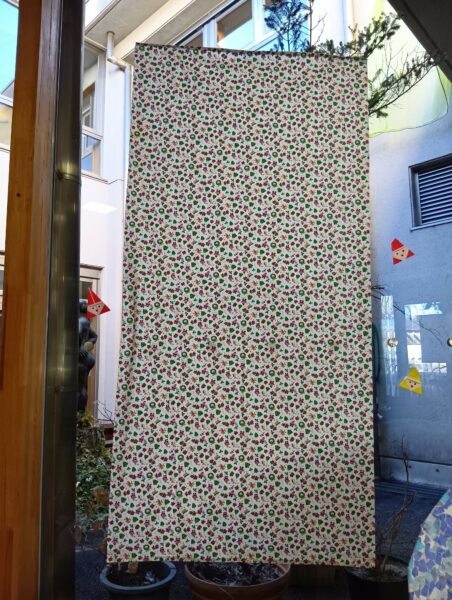 利用者の皆様が折り紙でサンタクロースを折ってくださり、クリスマスツリーに飾りつけして、クリスマス柄のタペストリーも飾り、デイサービスが華やかになってきました。一体サンタクロースは何人いるでしょう?