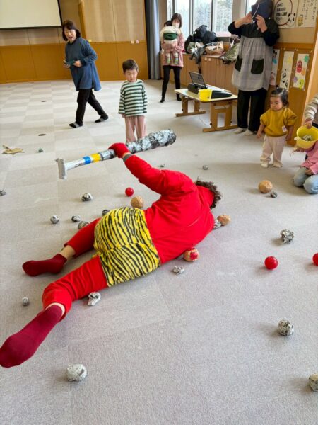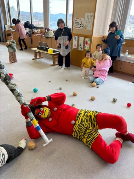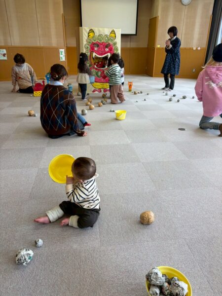 「おにはそとー!」と子どもたちが豆まきの練習をしていたら・・・