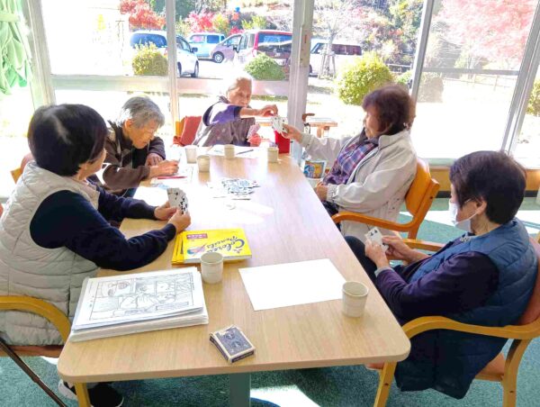 そんな中、ご利用者様同士でトランプを楽しまれることもあり和やかな時間を過ごされています。