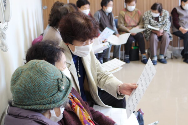 まずは3人1チームとなり、東濃弁ビンゴゲームをしました。チームの人と話し合い、ビンゴゲームの台紙を作るところからスタート。知らない東濃弁は教え合い、自然と会話が弾みました。