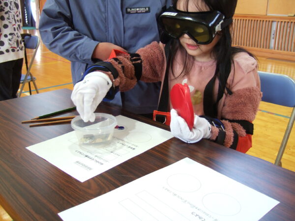 明智小学校4年生が福祉体験学習で高齢者擬似体験と車いす体験を行いました。