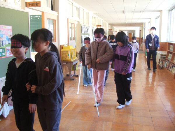 「白杖を初めて見た。」「実際に歩いてみると、階段や曲がるときが怖かった。」