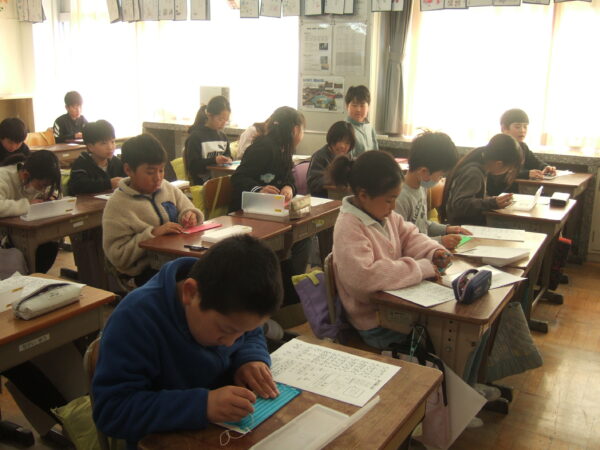 明智小学校4年生が福祉学習で点字・白杖体験を行いました。