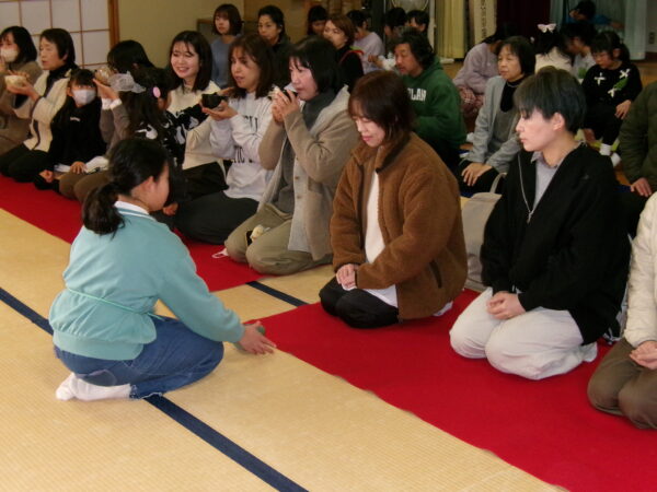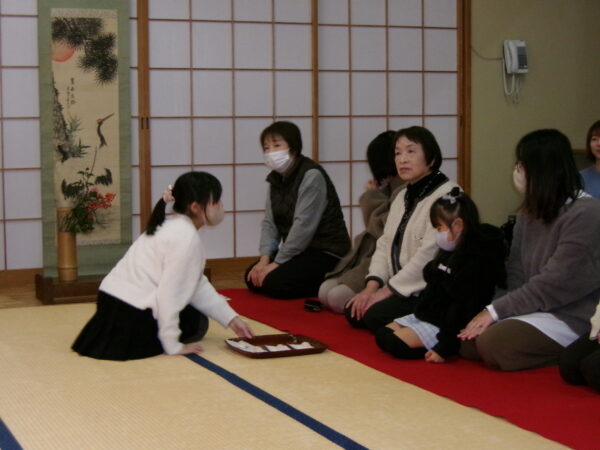 保護者の皆様には、6年生のお点前や4年生のお運びなど日ごろのおけいこの成果を見ていただいたり、
