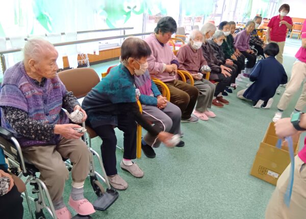 続いて、玉入れゲームを行い、移動する箱に球を一生懸命投げられ笑い溢れる時間を過ごされました。