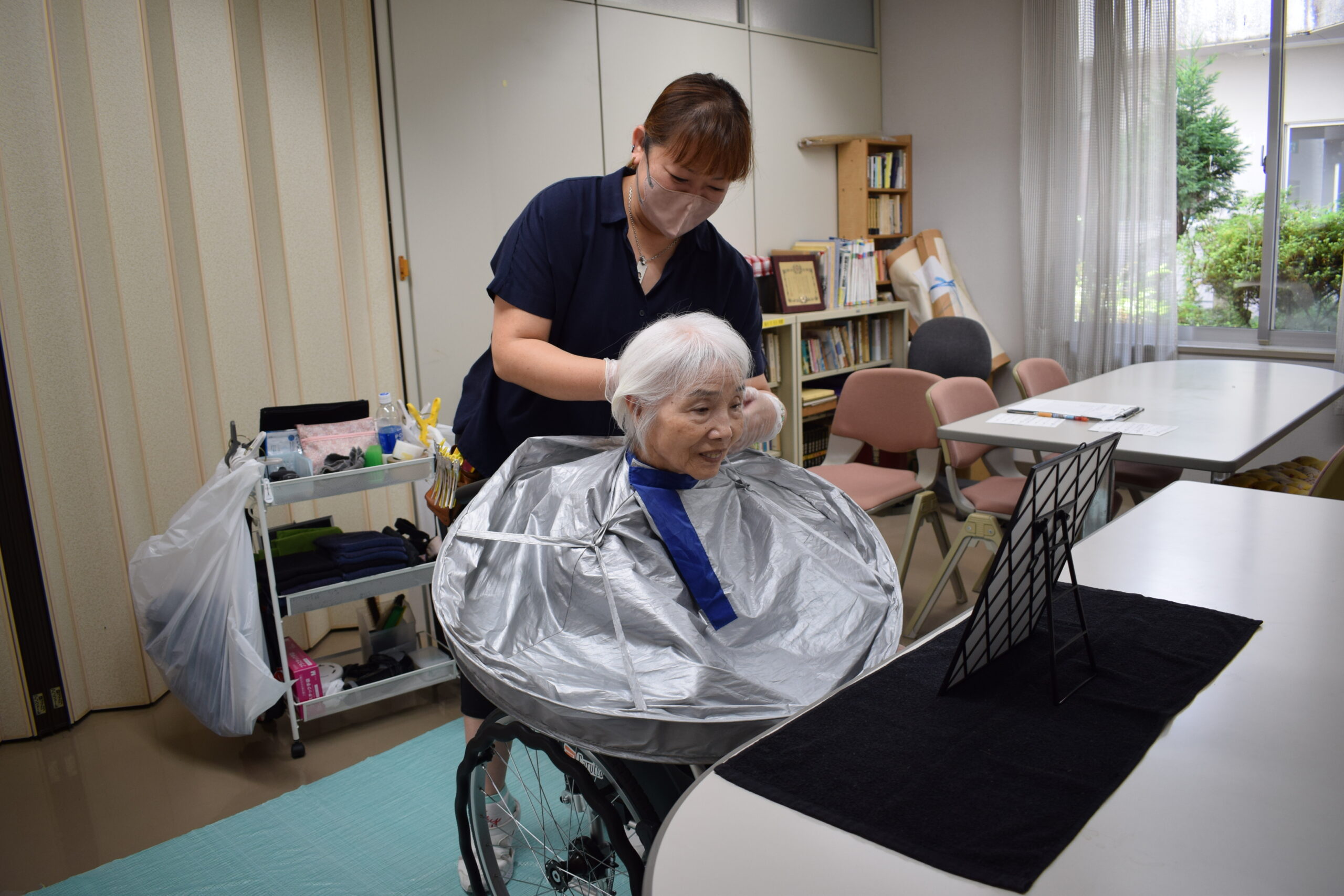 令和7年8月より、デイサービス利用時に受けることができる理美容サービスを開始しました。「髪を切りたいけどなかなか行けない」「いくつになってもおしゃれがしたい」といった声にお応えするため、カットだけでなくカラーやパーマのご利用も可能です。
