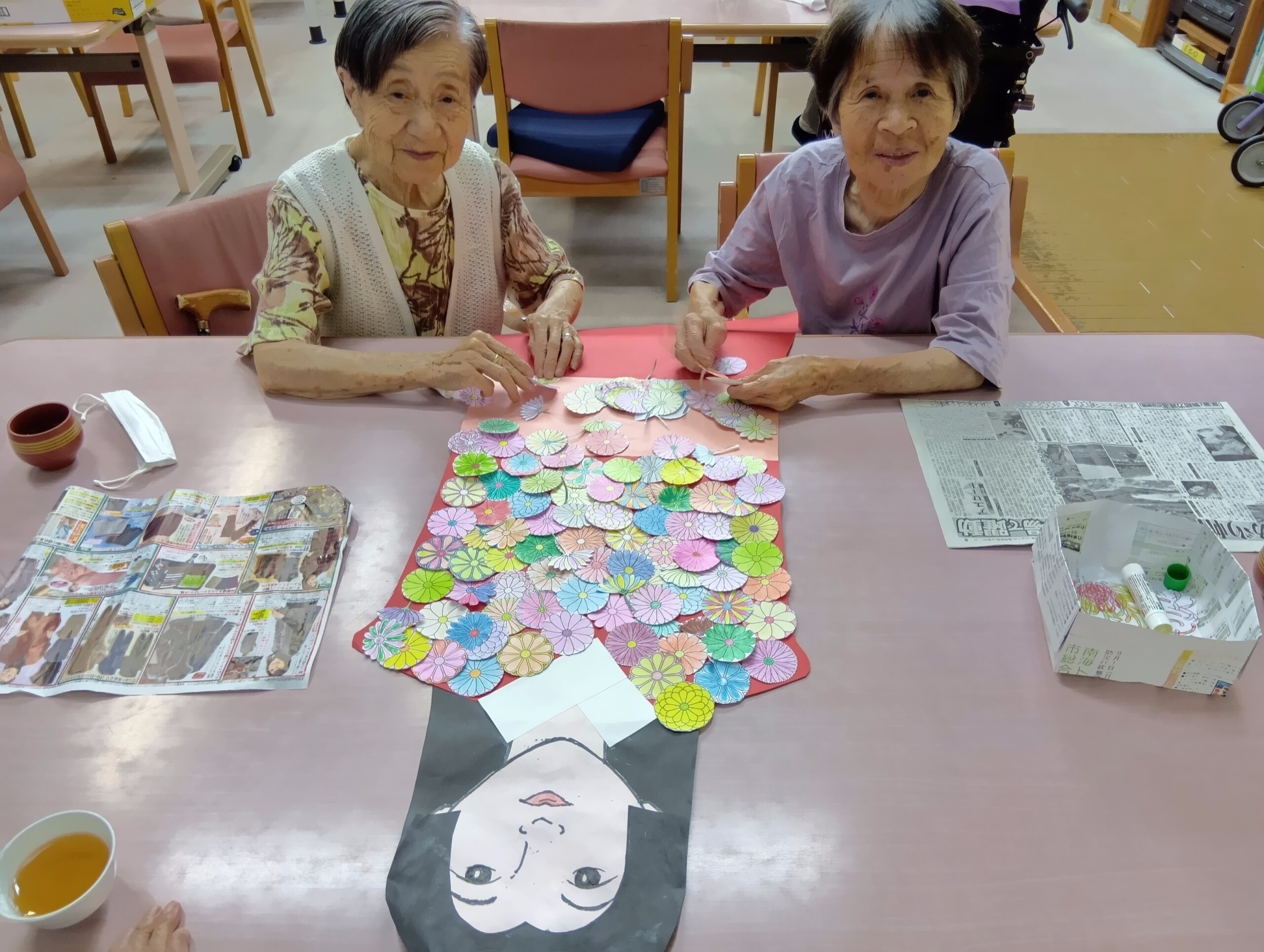 定員35名中、町内や近隣市町村の方のご利用が多く 「久しぶりに会えた」「同窓会みたいや」と同じ年代の方同士、話に花を咲かせてみえます。
